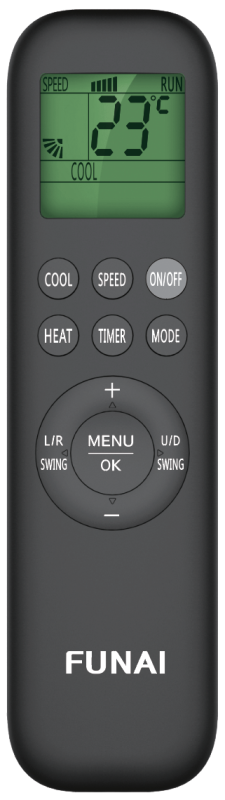 Беспроводной пульт управления с LED – дисплеем, подсветкой и индикацией установленной температуры, предназначен для управления кондиционером.