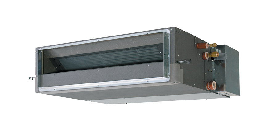 Конструкция внутреннего блока оптимизирована - трубопроводы хладагента подключаются к внутреннему блоку сзади, что очень удобно при монтаже оборудования в ограниченном пространстве.Гибкость монтажа обеспечивается увеличенными максимальными длинами трасс и перепадами высот: до 30 м и 20 м соответственно; а также изменяемым внешним статическим напором - до 150 Па.