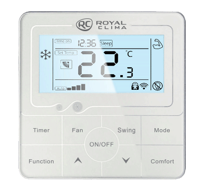 Проводной пульт управления для высоконапорных полупромышленных сплит-систем серий COMPETENZA имеет легкий и удобный интерфейс, позволяет настраивать все параметры работы сплит-систем.